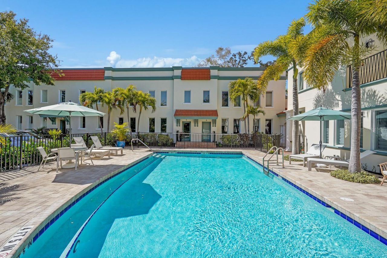 One or more photo(s) has been virtually staged. Significant Price Adjustment - Thoughtfully repositioned to reflect today's market, this residence now represents one of the most compelling offerings in its category.Trade snow for sunshine and enjoy the comfort of Florida living! Tucked within the charm of Historic Laurel Park, this beautifully refined three-bedroom, three-bath townhome with a loft offers a rare blend of privacy, sophistication, and walkable downtown living in the heart of Sarasota.Perfectly positioned within the well designed building, deliberately built to enhance privacy and showcase tranquil views of the community pool and lush greenery from every view-rather than looking directly into neighboring units.The two-story layout balances architectural elegance with effortless functionality, creating an inviting flow for both daily life and entertaining. Recent enhancements provide peace of mind and elevated style, including new luxury vinyl flooring, fresh interior and exterior paint, a new HVAC system, and a new roof. The kitchen is well-appointed for modern living with a gas range, complemented by the efficiency of a tankless water heater.Sunlight pours through tall casement windows, filling the home with a bright, airy ambiance and highlighting its understated finishes. The first level includes a private bedroom with a full bath conveniently located across the hall-ideal for guests or a dedicated home office. Upstairs, the primary suite and an additional bedroom each enjoy their own ensuite baths, along with a versatile loft space perfectly suited for a den, office, fitness studio, or flex space to meet today's lifestyle needs.From the expansive living areas, tranquil views overlook the community pool, offering a serene backdrop that feels both relaxed and elevated. Set within a pet-friendly enclave, this residence also delivers exceptional walkability-placing Sarasota's acclaimed dining, galleries, cultural venues, waterfront parks and marinas just steps from your door. Additional conveniences include shared outdoor space with community grill or room for your own, two dedicated parking spaces and access to a community storage room ideal for beach chairs, bicycles, pool accessories, and seasonal items, adding both practicality and ease to downtown living. HOA dues are comparatively lower than many nearby communities, enhancing the overall value of this downtown lifestyle.Timeless, quiet, and impeccably maintained, this is downtown Sarasota living at its most refined-within one of the city's most coveted neighborhoods.