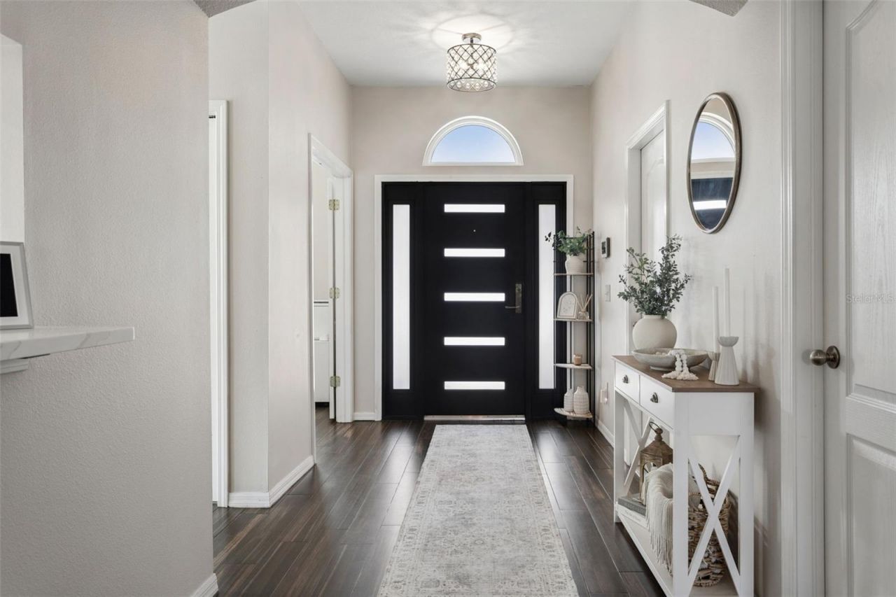 24833 Panacea Drive - Exceptional updated 4-bedroom, 2-bath home with an office (or potential 5th bedroom) on a quiet cul-de-sac in Lutz. Offered under $450,000, this move-in ready residence features superb curb appeal, an extra-long driveway, no CDD, and a low HOA of $245/year. The brick paved entrance greets you with a contemporary hurricane rated front door into the expansive foyer into an open floorplan with a formal dining area flowing into the family room. The renovated kitchen is adjacent to the dining room and boasts stainless steel appliances, white cabinetry, sleek quartz countertops, a farmhouse sink, and ample workspace. Throughout the home you'll find espresso wood-look plank tile, neutral walls, and upgraded lighting.The split-bedroom layout provides privacy: two bedrooms share an updated guest bath with quartz counters, a third bedroom is ideal for guests or a playroom, and the primary suite occupies its own wing. The primary bedroom offers generous proportions, a walk-in closet, and an updated bathroom with dual vanities, quartz counters, a freestanding soaking tub, and a walk-in shower. A French door from the primary bath leads to a screened patio-perfect for a future pool bath addition. Additional highlights include a 2022 roof, hurricane-impact windows and doors, security system, indoor walk-in laundry room, and a fully fenced, private backyard with no rear neighbors. Convenient to Tampa Premium Outlets, I-75, dining and shopping. Contact the listing agent today for a private showing.