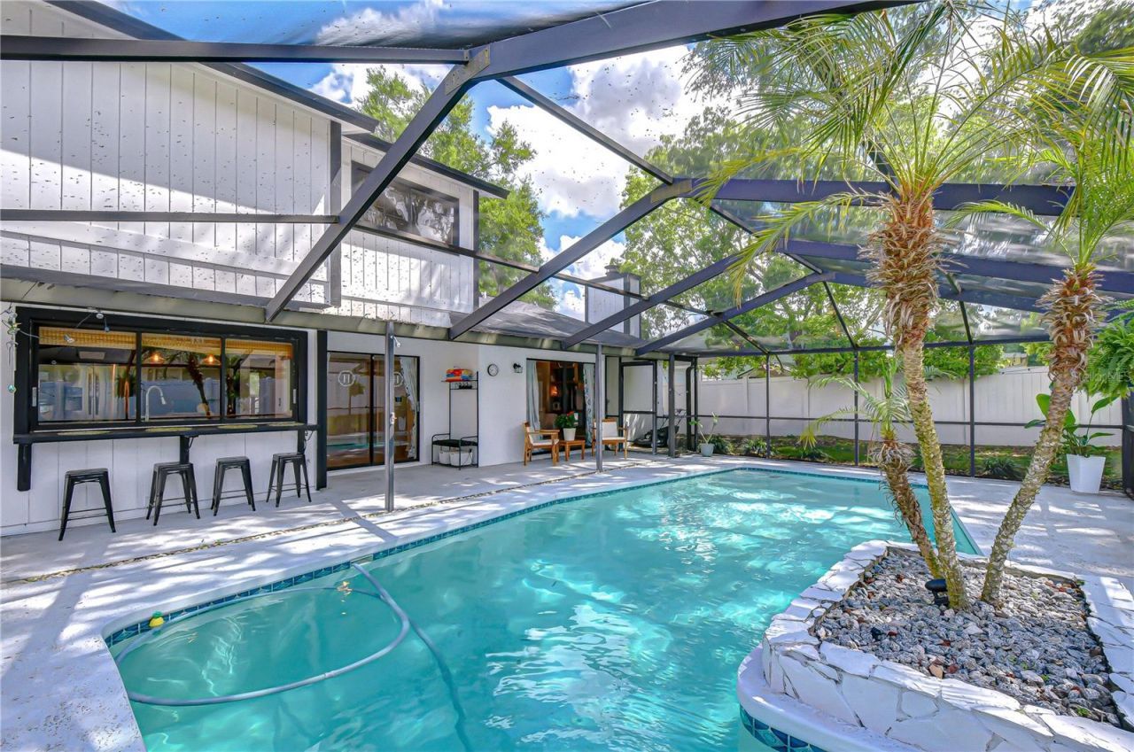 Get ready to fall in love! Situated on a spacious corner lot with a fully fenced backyard, this beautifully updated pool home offers the perfect blend of comfort, style, and convenience-complete with low HOA and no CDD fees. Meticulously maintained, this 4-bedroom, 2.5-bath, 2-car garage residence welcomes you with a charming front porch and undeniable pride of ownership throughout. Inside, you'll find a light-filled interior featuring luxury vinyl, laminate, and tile flooring-no carpet anywhere. The dining room showcases stylish shiplap accent walls that flow seamlessly into the living space. At the front of the home, the living room features French doors that open to the front porch, creating a wonderful indoor-outdoor space perfect for relaxing, entertaining, or enjoying quiet mornings. The fully remodeled kitchen is both functional and elegant, offering wood cabinetry, granite countertops, stainless steel appliances, an island with bar seating, a pass-through window, and a built-in hutch-perfect for everyday living and entertaining alike. The family room is a standout, featuring a wood-burning fireplace framed by custom built-ins, soaring vaulted ceilings that create an open, inviting atmosphere, and French doors leading to the lanai. Upstairs, the spacious primary suite serves as a true retreat with an updated en-suite bath, complete with a skylight, separate shower, standalone soaking tub, and an oversized walk-in closet. Three additional generously sized bedrooms share a full bath, providing flexibility for a variety of needs. A convenient second-floor laundry chute adds to the home's thoughtful design. Outdoor living truly shines in this home, offering the perfect setup for entertaining and enjoying the Florida lifestyle. The oversized screened-in pool area is complemented by a spacious covered lanai, ideal for gathering with family and friends. A pass-through window from the kitchen creates a seamless indoor-outdoor connection, complete with bar seating-perfect for serving drinks or casual dining poolside. Beyond the screened enclosure, the fully fenced backyard offers additional space with a patio area ideal for grilling, relaxing, or creating your own outdoor retreat. Surrounded by mature oak trees and lush landscaping, this backyard is both private and inviting-designed for making memories year-round. Major updates include a new roof (2021), pool pump (2021), and AC unit (2024), offering peace of mind for years to come. Ideally located with easy access to Tampa, Wesley Chapel, Lakeland, Plant City, Lithia, and Riverview-just 20-30 minutes away-and close to everything the Greater Brandon area has to offer. Schedule your private showing today and experience all this exceptional home has to offer!